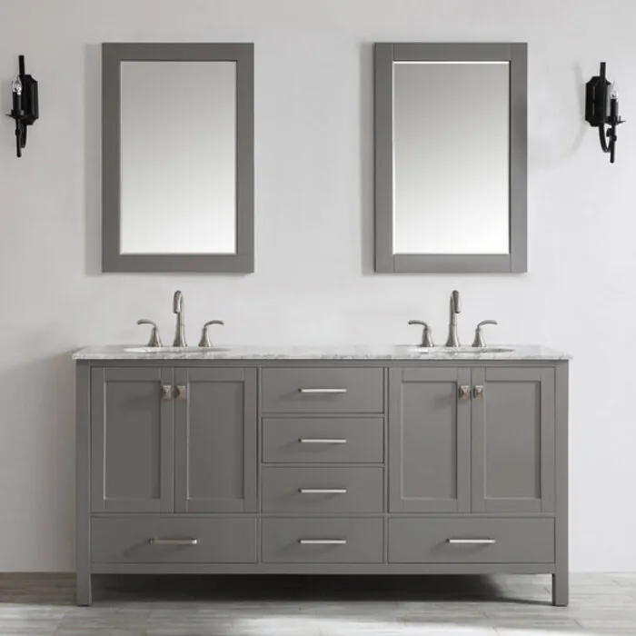 Gela 72 inch Double Bathroom Vanity in Grey with Carrara White Marble Countertop With Mirror 723072-GR-CA
