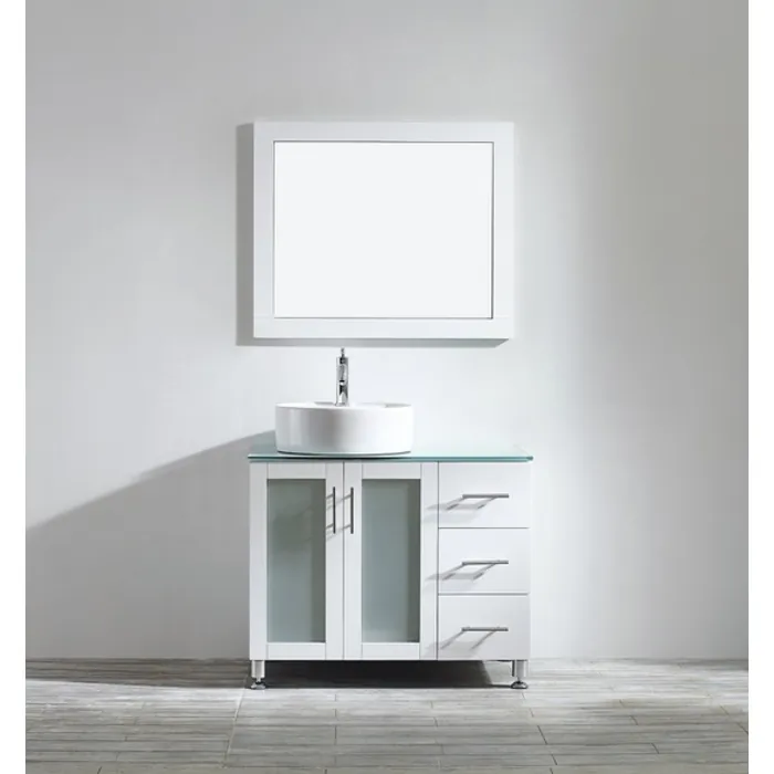 Tuscany 36 inch Bathroom Vanity in White with Glass Countertop with White Vessel Sink With Mirror 745036L-WH-WG