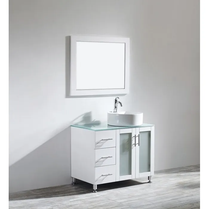 Tuscany 36 inch Bathroom Vanity in White with Glass Countertop with White Vessel Sink With Mirror 745036R-WH-WG