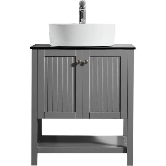 Vinnova Modena 28" Bathroom Vanity In Grey with Black Glass Bathroom Vanity Top with White Basin 756028-GR-BG