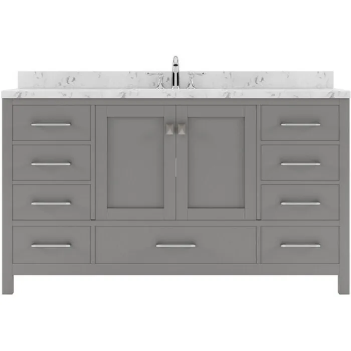 The Caroline Avenue vanity collection emanates an understated elegance that brings beauty and grace to just about any living space. Contemporary shaker style doors and clean lines make it a versatile addition to modern or transitional designs while offering bountiful storage as to not sacrifice functionality. Soft-closing door hinges and drawer glides provide added luxury, safety, and longevity. Each Caroline Avenue vanity is handcrafted with a 2" solid wood birch frame built to last a lifetime.The Caroline Avenue vanity collection emanates an understated elegance that brings beauty and grace to just about any living space.Contemporary shaker style doors and clean lines make it a versatile addition to modern or transitional designs while offering bountiful storage as to not sacrifice functionality.Functional & Versatile - Soft-closing door hinges and drawer glides provide added luxury, safety, and longevity. Each Caroline Avenue vanity is handcrafted with a 2" solid wood birch frame built to last a lifetime.Vanity kit includes quartz countertop in Cultured Marble. Unmatched in resilience, this countertop is non-porous and extremely resistant to impact, stains, and scratches. Conveniently pre-drilled for ease of installation and never requires sealing.Easy Installation - Base cabinet is fully assembled and ready to be installed.Bathroom Vanity Set - This vanity kit includes cabinet, sink, and countertop. Components have been expertly designed and engineered for optimal stylistic fit and compatibility with this particular cabinet.Sized For Fit & Storage - 60 in. W x 22 in. D x 35 in. HIncludes - 60" Gray Cabinet, Cultured Marble Quartz Countertop, 1 Square Undermount SinkAmple Storage - 2 Total Functional Soft-Close Doors and 7 Total Functional Soft-Close Drawers