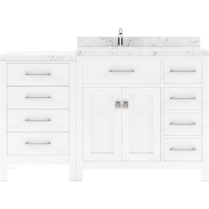 The Caroline Parkway vanity collection emanates an understated elegance that brings beauty and grace to just about any living space. Contemporary shaker style doors and clean lines make it a great addition to modern or transitional designs while offering bountiful storage as to not sacrifice functionality. The modular design is both eye-catching and phenomenally versatile. Soft-closing door hinges and drawer glides provide added luxury, safety, and longevity. Each Caroline Parkway vanity is handcrafted with a 2" solid wood birch frame built to last a lifetime.The Caroline Parkway vanity collection emanates an understated elegance that brings beauty and grace to just about any living space.Contemporary shaker style doors and clean lines make it a great addition to modern or transitional designs while offering bountiful storage as to not sacrifice functionality. The modular design is both eye-catching and phenomenally versatile.Functional & Versatile - Soft-closing door hinges and drawer glides provide added luxury, safety, and longevity. Each Caroline Parkway vanity is handcrafted with a 2" solid wood birch frame built to last a lifetime.Vanity kit includes quartz countertop in Cultured Marble. Unmatched in resilience, this countertop is non-porous and extremely resistant to impact, stains, and scratches. Conveniently pre-drilled for ease of installation and never requires sealing.Easy Installation - Base cabinet is fully assembled and ready to be installed.Bathroom Vanity Set - This vanity kit includes cabinet, sink, and countertop. Components have been expertly designed and engineered for optimal stylistic fit and compatibility with this particular cabinet.Sized For Fit & Storage - 57 in. W x 22 in. D x 35 in. HIncludes - 57" White Cabinet, Cultured Marble Quartz Countertop, 1 Square Undermount SinkAmple Storage - 2 Total Functional Soft-Close Doors and 4 Total Functional Soft-Close Drawers
