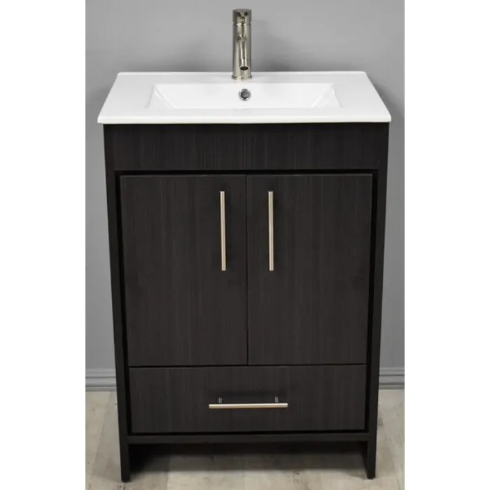 Pacific 24 inch Modern Bathroom Vanity in Black Ash with Integrated Ceramic Top and Stainless Steel Round Hollow Hardware MTD-3124BA-14 Made in USA