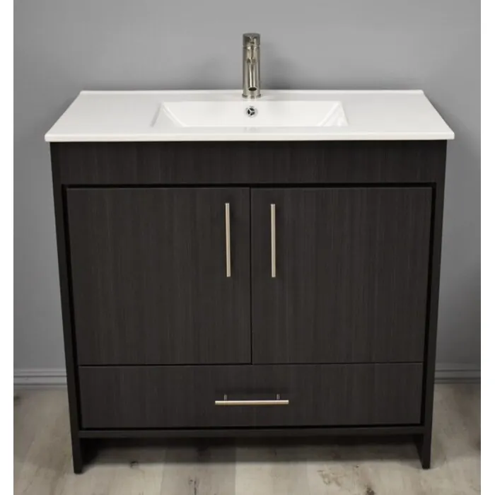Pacific 36 inch Modern Bathroom Vanity in Black Ash with Integrated Ceramic Top and Stainless Steel Round Hollow Hardware MTD-3136BA-14 Made in USA