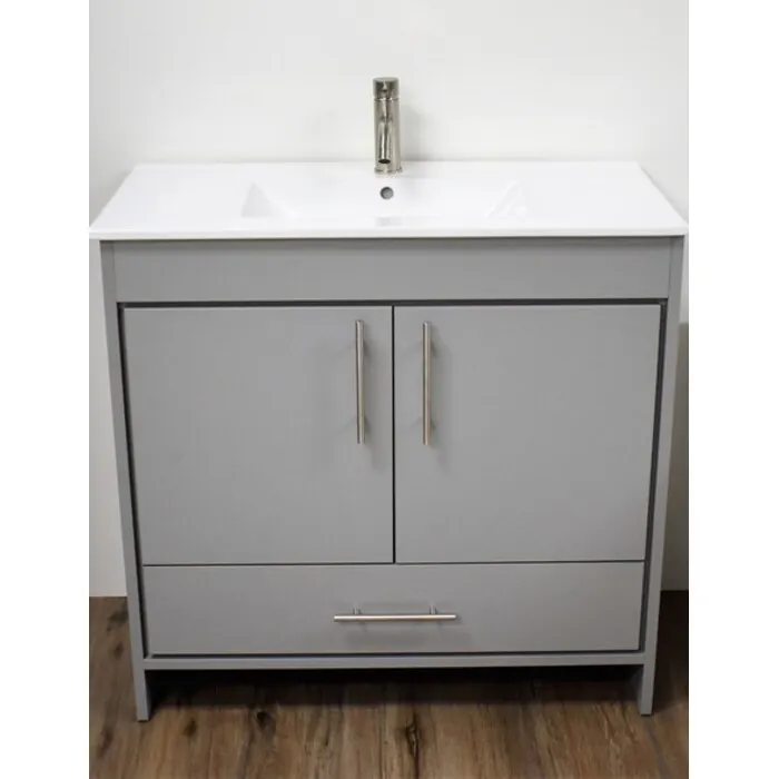 Pacific 36 inch Modern Bathroom Vanity in Grey with Integrated Ceramic Top and Stainless Steel Round Hollow Hardware MTD-3136G-14 Made in USA