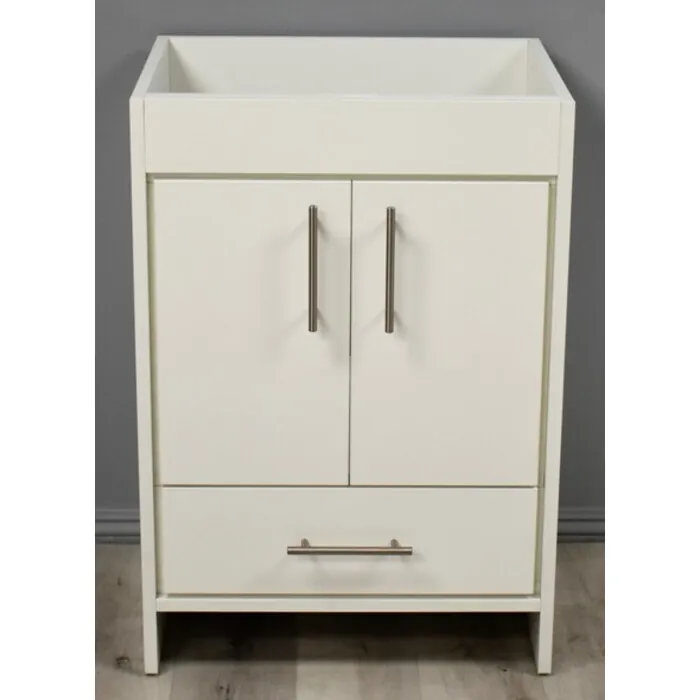 Rio 24 inch Modern Bathroom Vanity in Soft White with Satin Nickel Thin Hardware Cabinet Only MTD-324W-0 Made in USA