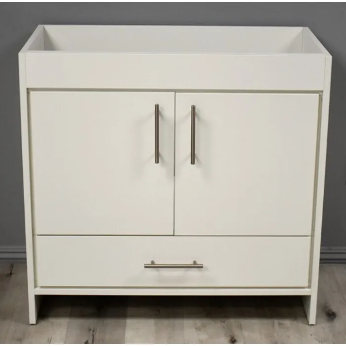 Rio 36 inch Modern Bathroom Vanity in Soft White with Satin Nickel Thin Hardware Cabinet Only MTD-336W-0 Made in USA