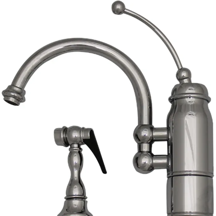 Whitehaus New Horizon Single Handle Kitchen Faucet With Curved Extended Stick Handle, Curved Swivel Spout And Side Spray In Polished Chrome 3-3170-C