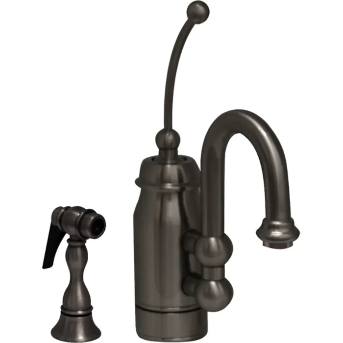 Whitehaus Baby Horizon Single Handle Entertainment/prep Faucet With Curved Extended Stick Handle And Curved Swivel Spout In Pewter 3-3178-P