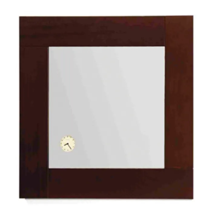 Whitehaus AMET01 23 5/8 inch Antonio Miro Square Mirror With Iroko Wood Frame And Built-in Clock