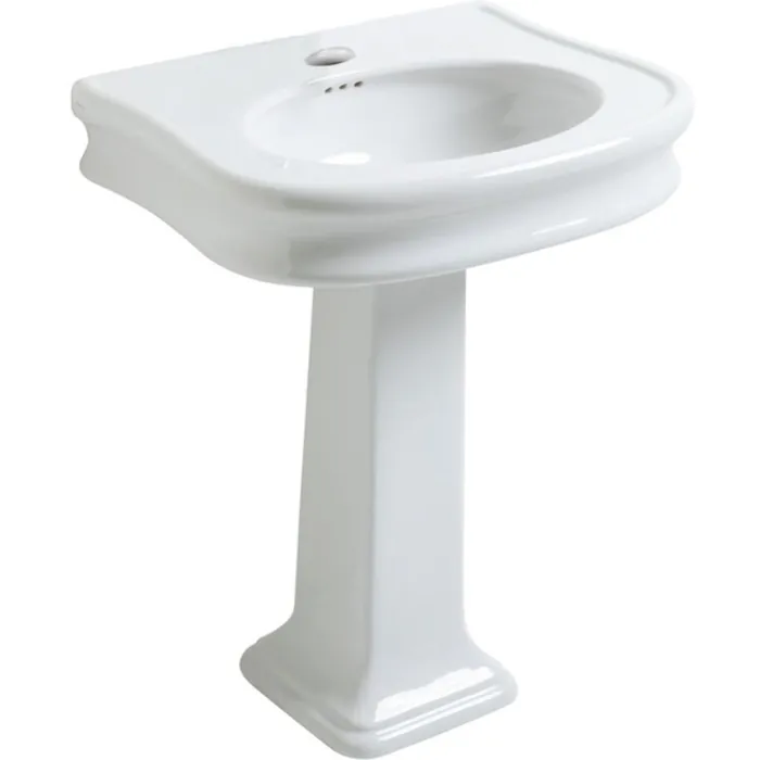 Whitehaus Isabella Collection Traditional Pedestal Sink With Integrated Oval Bowl, Seamless Rounded Decorative Trim, Rear Overflow And Single Hole Faucet Drill In White LA10-LA03-1H