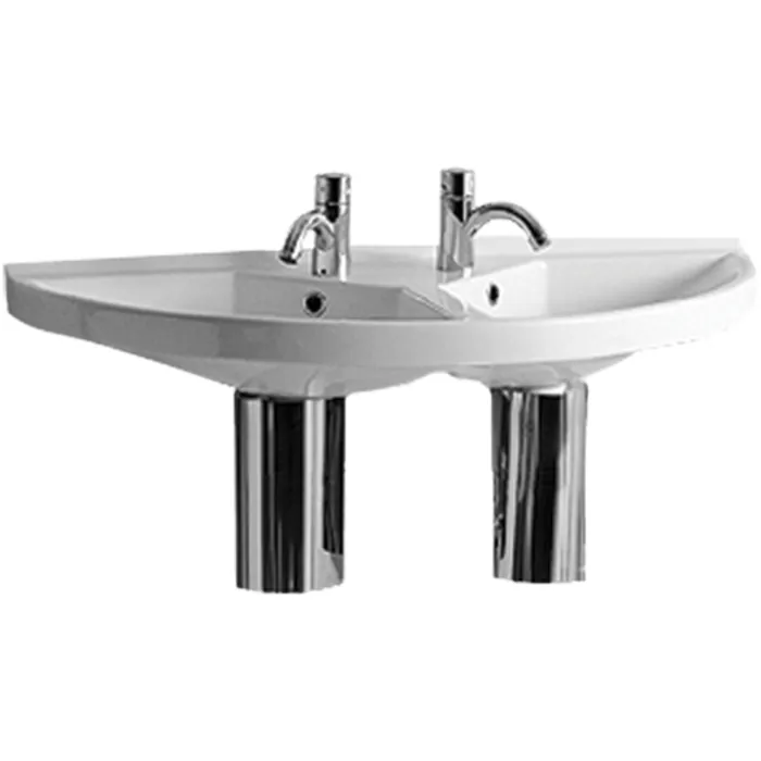 China Series large u-shaped wall mount double basin with chrome overflows
