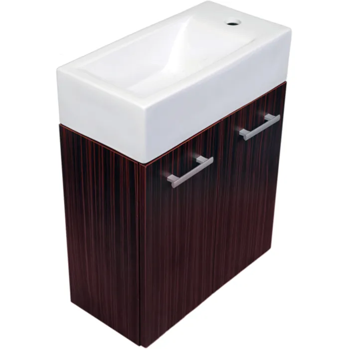 Wall mount double door vanity complete with a white basin