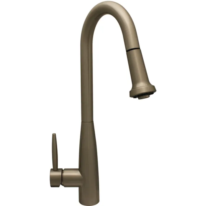 Whitehaus WH2070838-BN Jem Collectin Single Hole Faucet With A Gooseneck Swivel Spout, Pull-down Spray Head, And Lever Handle