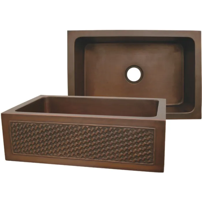 Whitehaus Copperhaus sinks are the perfect statement piece for your prep or kitchen area. These subtle handcrafted sinks are uniquely elegant and exude warmth and serenity, creating an ideal focal point. The natural antibacterial effect, as well as inherent ageing process keeps your sink clean and stunning for years to come. The perfect addition for a rustic touch or contemporary twist to any style kitchen, this Copperhaus undermount sink with a basket weave design front apron in bronze will stand the test of time in both functionality and style