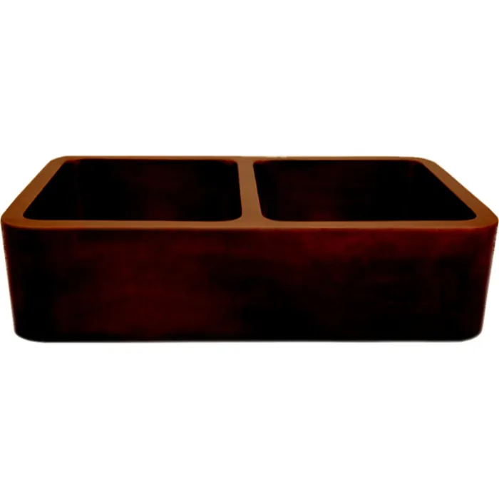 Whitehaus Copperhaus Rectangular Double Bowl Undermount Sink With Smooth Front Apron In Smooth Bronze WH3621COFCD-OBS