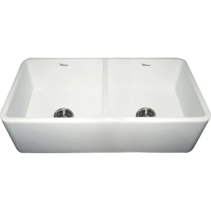 Whitehaus Collection offers the widest selection of fireclay sinks on the market today. Every sink is handmade from natural clay, molded, and then baked into an elegant, smooth and glossy finish. Being eco-friendly and lead free only adds to the allure of Farmhaus Fireclay sink. Proven to be durable and resistant to extreme temperatures fireclay sinks are visually appealing and timeless in design. Whitehaus Collection’s eco-friendly, Farmhaus Fireclay sinks are available in a variety of colors and designs and will complete the look in any kitchen. The Farmhaus Fireclay Duet Series reversible 36" fireclay double bowl sink with smooth front apron is finished on all four sides and is available in White, Biscuit, Black and Sapphire Blue.