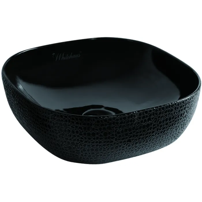 Whitehaus WH71301-F04 Isabella Plus Collection Square Above Mount Basin With An Embossed Exterior, Smooth Interior, And Center Drain