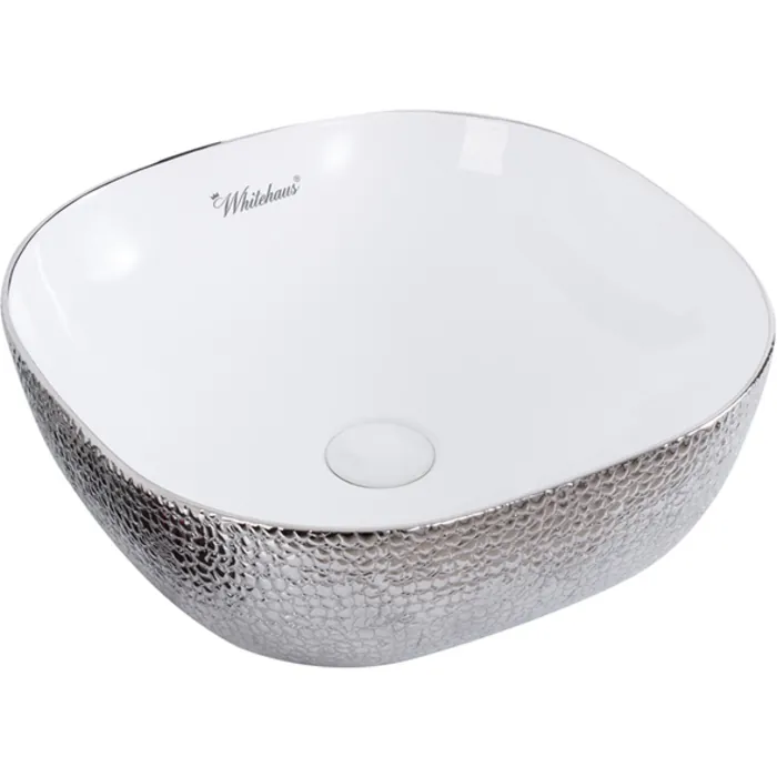 Whitehaus WH71301-F21 Isabella Plus Collection Square Above Mount Basin With An Embossed Exterior, Smooth Interior, And Center Drain