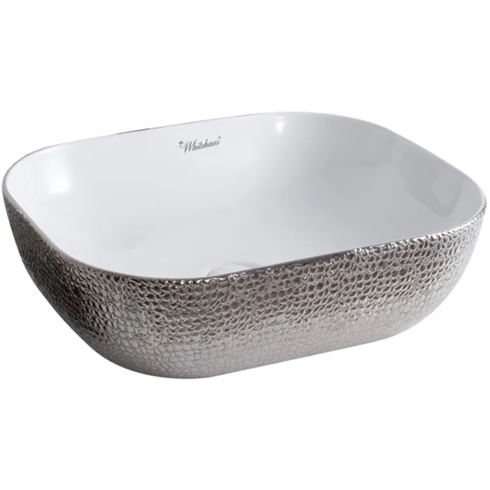 Whitehaus WH71302-F21 Isabella Plus Collection Rectangular Above Mount Basin With An Embossed Exterior, Smooth Interior, And Center Drain