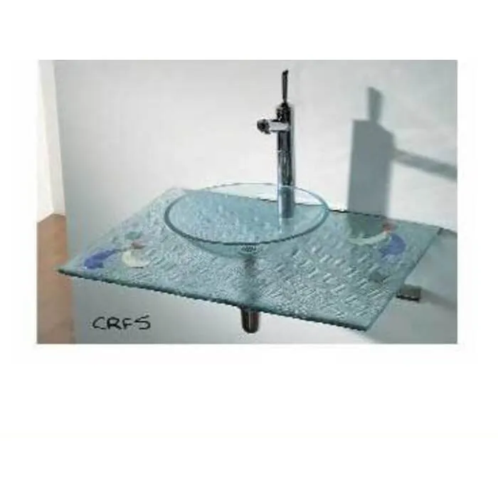 New Generation basket woven transparent glass fused top with colored glass details and contact basin – polished stainless steel wall mount supports included