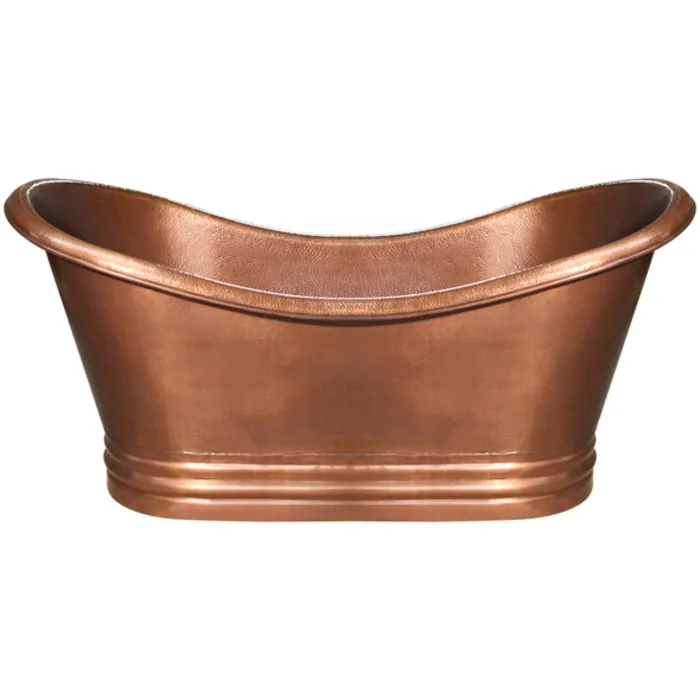Handmade copper double ended freestanding bathtub with hammered exterior, lightly hammered interior and no overflow