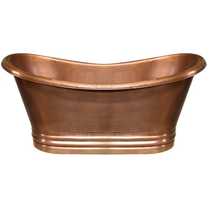 Handmade copper double ended freestanding bathtub with hammered exterior, lightly hammered interior and no overflow