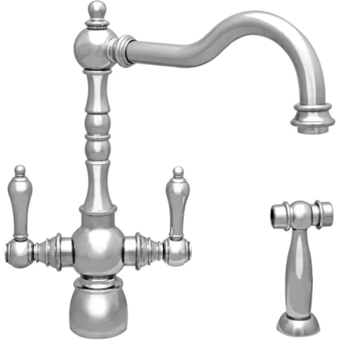 Englishhaus dual lever handle faucet with traditional swivel spout, solid lever handles and solid side spray