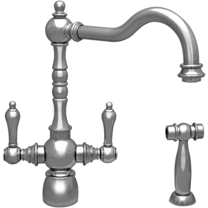 Englishhaus dual lever handle faucet with traditional swivel spout, solid lever handles and solid side spray