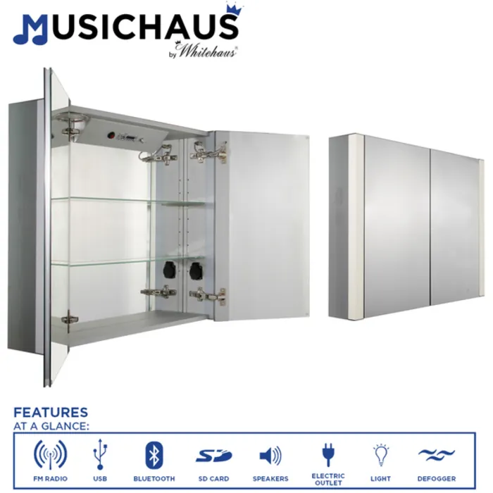 Musichaus Double door cabinet with USB, SD card, Bluetooth, FM radio, speakers, Defogger, & Dimmer