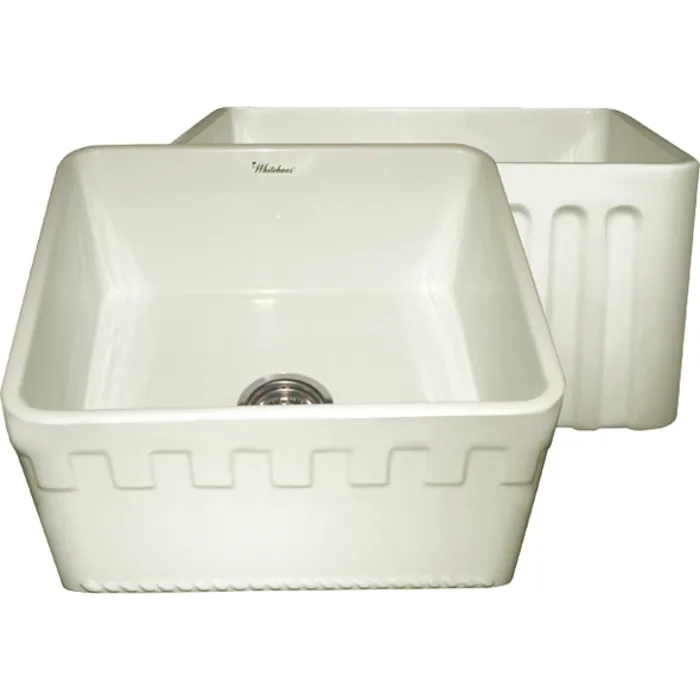Whitehaus Collection offers the widest selection of fireclay sinks on the market today. Every sink is handmade from natural clay, molded, and then baked into an elegant, smooth and glossy finish. Being eco-friendly and lead free only adds to the allure of Farmhaus Fireclay sink. Proven to be durable and resistant to extreme temperatures fireclay sinks are visually appealing and timeless in design. Whitehaus Collection’s patented, eco-friendly, Farmhaus Fireclay sinks are available in a variety of colors and designs and will complete the look in any kitchen. The Whitehaus Collection's 20" Reversible series fireclay sink with a Castlehaus front apron on one side and fluted front apron on the opposite side is featured here in your choice of White, Biscuit Black and Sapphire Blue.