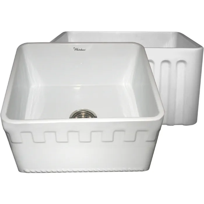 Whitehaus Collection offers the widest selection of fireclay sinks on the market today. Every sink is handmade from natural clay, molded, and then baked into an elegant, smooth and glossy finish. Being eco-friendly and lead free only adds to the allure of Farmhaus Fireclay sink. Proven to be durable and resistant to extreme temperatures fireclay sinks are visually appealing and timeless in design. Whitehaus Collection’s patented, eco-friendly, Farmhaus Fireclay sinks are available in a variety of colors and designs and will complete the look in any kitchen. The Whitehaus Collection's 20" Reversible series fireclay sink with a Castlehaus front apron on one side and fluted front apron on the opposite side is featured here in your choice of White, Biscuit Black and Sapphire Blue.