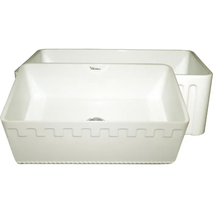 Whitehaus Collection offers the widest selection of fireclay sinks on the market today. Every sink is handmade from natural clay, molded, and then baked into an elegant, smooth and glossy finish. Being eco-friendly and lead free only adds to the allure of Farmhaus Fireclay sink. Proven to be durable and resistant to extreme temperatures fireclay sinks are visually appealing and timeless in design. Whitehaus Collection’s patented, eco-friendly, Farmhaus Fireclay sinks are available in a variety of colors and designs and will complete the look in any kitchen. The Whitehaus Collection's 30" Reversible series fireclay sink with a Castlehaus front apron on one side and fluted front apron on the opposite side is featured here in your choice of White, Biscuit Black and Sapphire Blue.