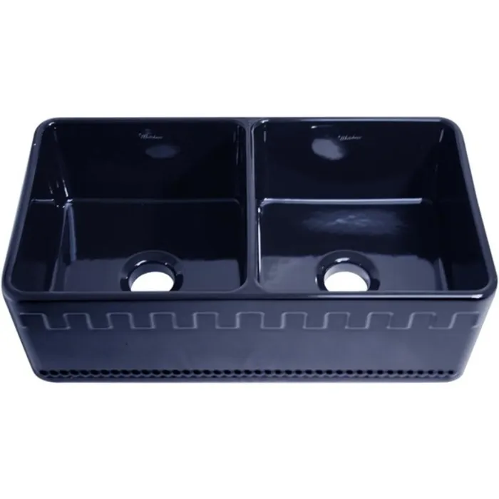 Whitehaus Collection offers the widest selection of fireclay sinks on the market today. Every sink is handmade from natural clay, molded, and then baked into an elegant, smooth and glossy finish. Being eco-friendly and lead free only adds to the allure of Farmhaus Fireclay sink. Proven to be durable and resistant to extreme temperatures fireclay sinks are visually appealing and timeless in design. Whitehaus Collection’s patented, eco-friendly, Farmhaus Fireclay sinks are available in a variety of colors and designs and will complete the look in any kitchen. The Whitehaus Collection's 33" Reversible series double bowl fireclay sink with a Castlehaus front apron on one side and fluted front apron on the opposite side is featured here in your choice of White, Biscuit Black and Sapphire Blue.