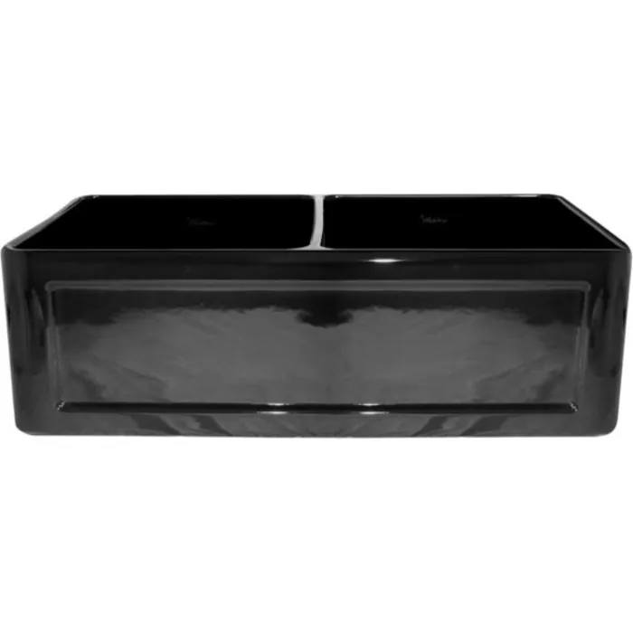 Whitehaus Farmhaus Fireclay Reversible Double Bowl Sink With A Concave Front Apron On One Side And Fluted Front Apron On The Other In Black WHFLCON3318-BLACK