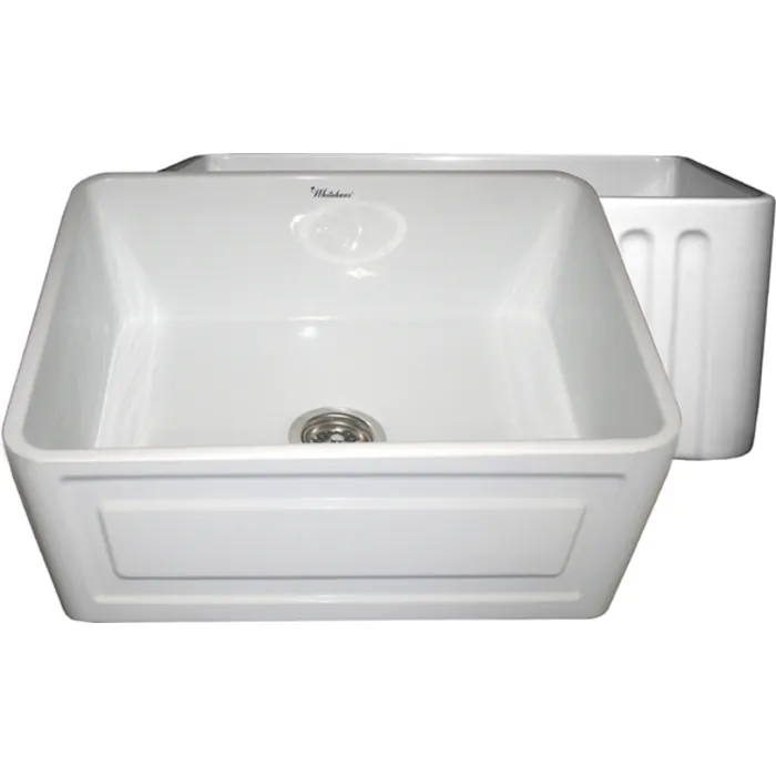 Whitehaus Collection offers the widest selection of fireclay sinks on the market today. Every sink is handmade from natural clay, molded, and then baked into an elegant, smooth and glossy finish. Being eco-friendly and lead free only adds to the allure of Farmhaus Fireclay sink. Proven to be durable and resistant to extreme temperatures fireclay sinks are visually appealing and timeless in design. Whitehaus Collection’s patented, eco-friendly, Farmhaus Fireclay sinks are available in a variety of colors and designs and will complete the look in any kitchen. The Whitehaus Collection 24" Reversible series fireclay sink with a raised front panel apron on one side and a fluted front apron on the opposite side featured here in your choice of White, Biscuit, Black and Sapphire Blue.