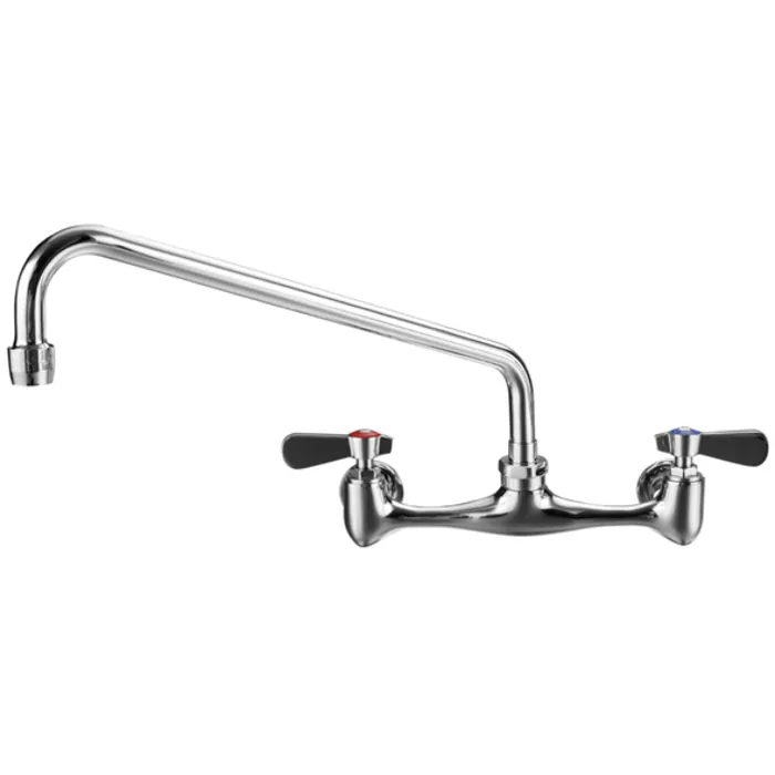 Wall mount laundry faucet with extended swivel spout and lever handles