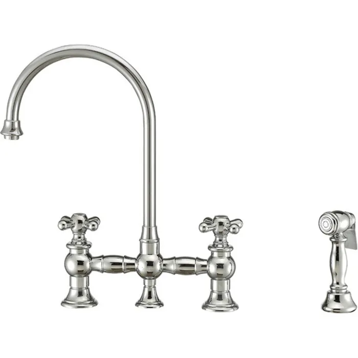 Whitehaus Vintage Iii Plus Bridge Faucet With Long Gooseneck Swivel Spout, Cross Handles And Solid Brass Side Spray In Polished Chrome WHKBTCR3-9101-NT-C