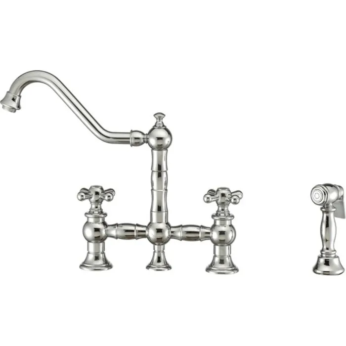 Whitehaus Vintage Iii Plus Bridge Faucet With Long Traditional Swivel Spout, Cross Handles And Solid Brass Side Spray In Polished Chrome WHKBTCR3-9201-NT-C