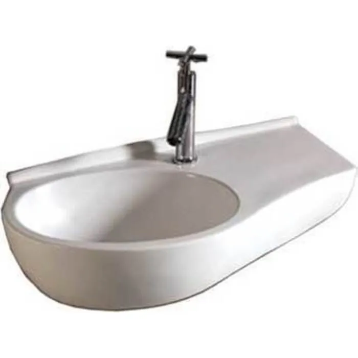 Isabella curve shaped wall mount basin with integrated oval bowl, single faucet hole and center drain
