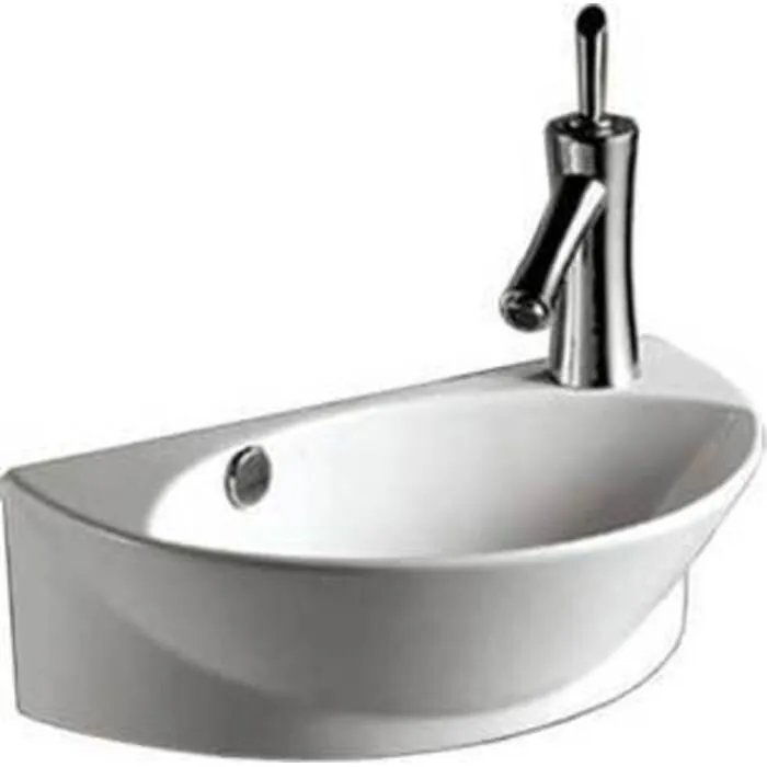 Isabella half-oval wall mount basin with integrated oval bowl, overflow, right offset single faucet hole and center drain