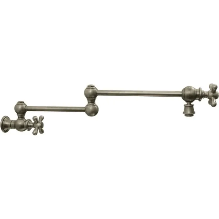 Whitehaus Collection's Vintage III Pot Fillers complement many kitchens styles. Ensuring strength and durability for a lifetime these faucets are made from solid brass and will become a piece in your home to withstand the test of time. The Vintage III double jointed retractable wall mount pot filler with cross handles and swivel aerator is available in Polished Chrome, Brushed Nickel, Antique Brass, Antique Copper, Oil Rubbed Bronze and Pewter.