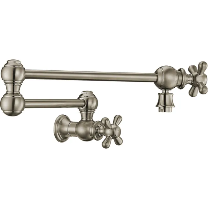 Whitehaus Vintage Iii Plus Wall Mount Retractable Swing Spout Pot Filler With Cross Handles In Brushed Nickel WHKPFCR3-9550-NT-BN