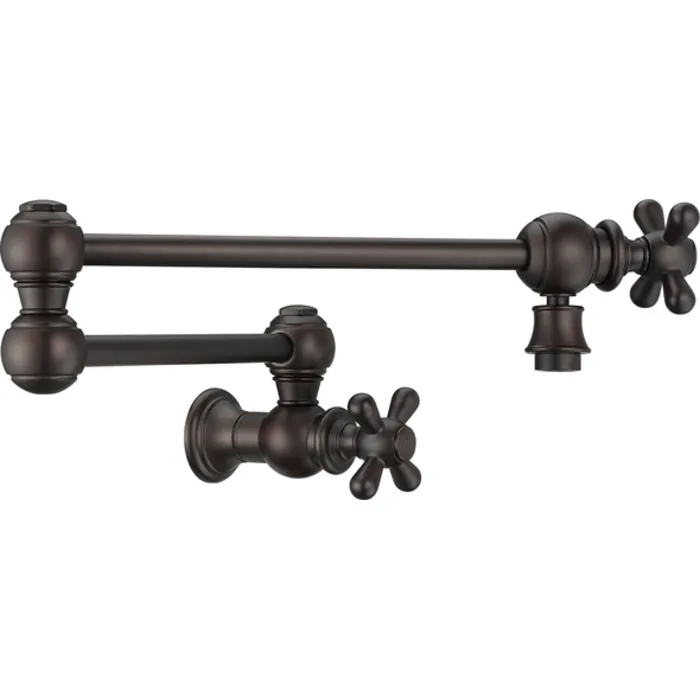 Whitehaus Vintage Iii Plus Wall Mount Retractable Swing Spout Pot Filler With Cross Handles In Oil Rubbed Bronze WHKPFCR3-9550-NT-ORB