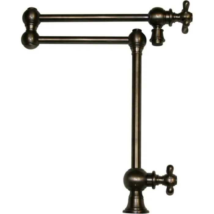 Whitehaus Collection's Vintage III Pot Fillers complement many kitchens styles. Ensuring strength and durability for a lifetime these faucets are made from solid brass and will become a piece in your home to withstand the test of time. The Vintage III deck mount dual arm pot filler with cross handles and swivel aerator is available in Polished Chrome, Brushed Nickel, Antique Brass, Antique Copper, Oil Rubbed Bronze and Pewter.