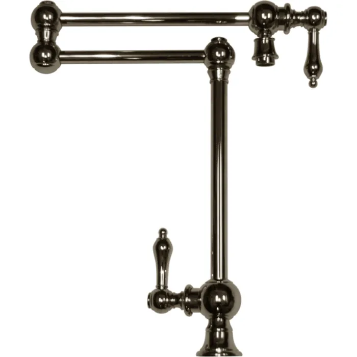 Whitehaus Collection's Vintage III Pot Fillers complement many kitchens styles. Ensuring strength and durability for a lifetime these faucets are made from solid brass and will become a piece in your home to withstand the test of time. The Vintage III deck mount dual arm pot filler with lever handles and swivel aerator is available in Polished Chrome, Brushed Nickel, Antique Brass, Antique Copper, Oil Rubbed Bronze and Pewter.