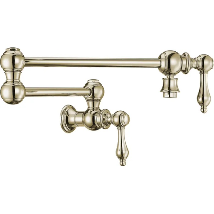 Vintage III Plus by Whitehaus Collection offers the finest craftsmanship and style that leaves a lasting impression in your kitchen. Designed to complement any home, Vintage III Plus pot fillers are made of solid brass that ensures durability and strength. The double jointed retractable wall mount pot filler with lever handles and swivel aerator will bring a unique elegance into your home. Available in exquisite finishes to fit your design choice: Polished Chrome, Polished Nickel, Brushed Nickel, Antique Brass, Oil Rubbed Bronze