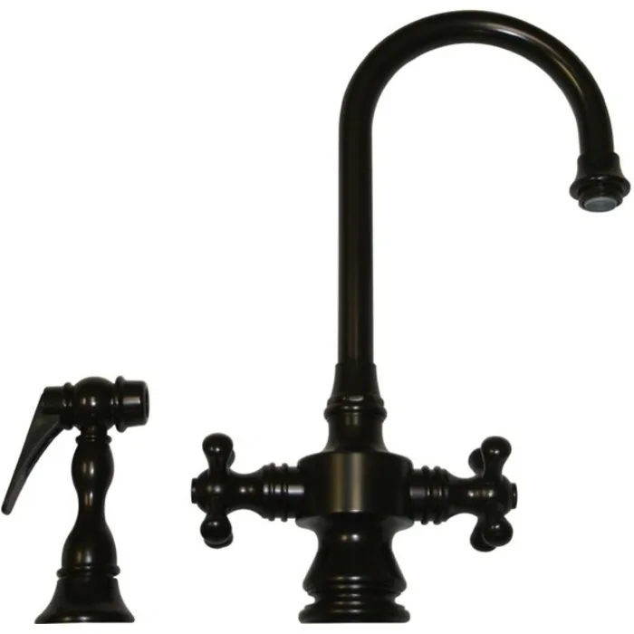 Whitehaus Vintage Iii Dual Handle Entertainment/prep Faucet With Short Gooseneck Swivel Spout, Cross Handles And Solid Brass Side Spray In Oil Rubbed Bronze WHKSDCR3-8104-ORB
