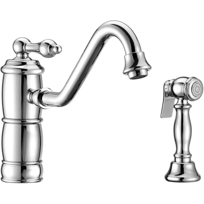 Whitehaus Vintage Iii Plus Single Lever Faucet With Traditional Swivel Spout And Solid Brass Side Spray In Polished Chrome WHKTSL3-2200-NT-C