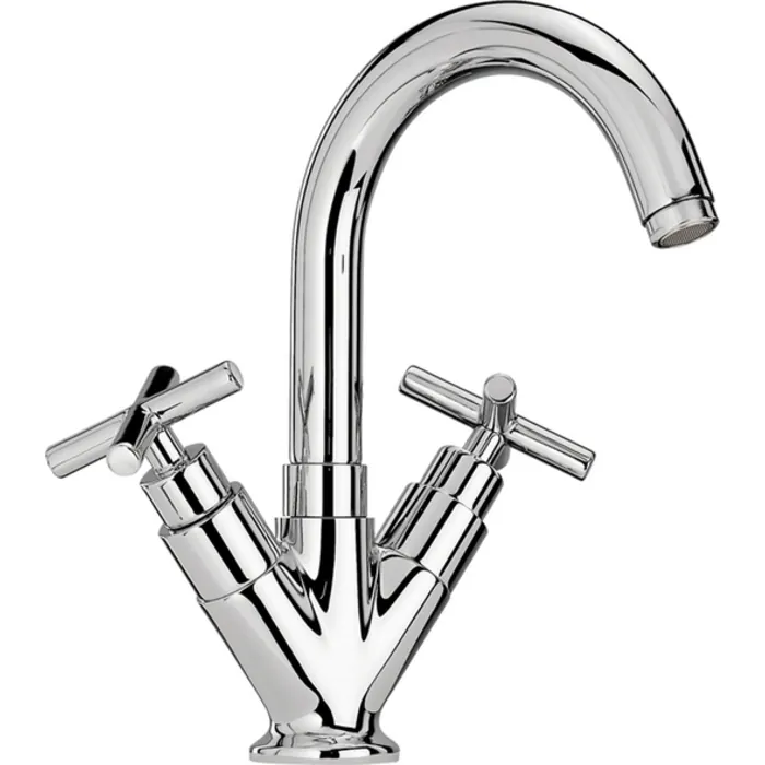 Whitehaus Luxe Single Hole/dual Handle Lavatory Faucet With Tubular Swivel Spout, Cross Handles And Pop-up Waste In Polished Chrome WHLX79250-C